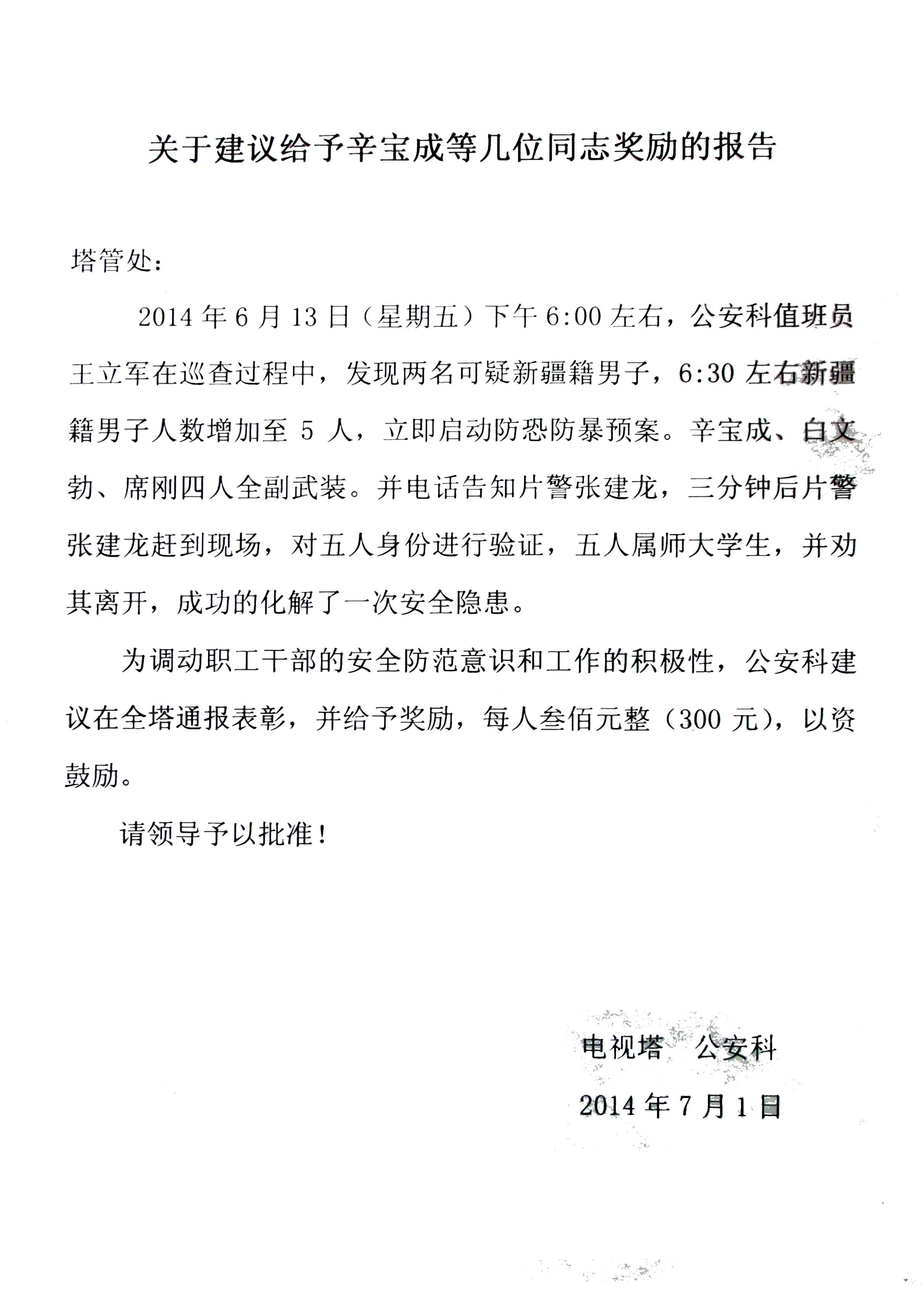 2014七月份表扬通报