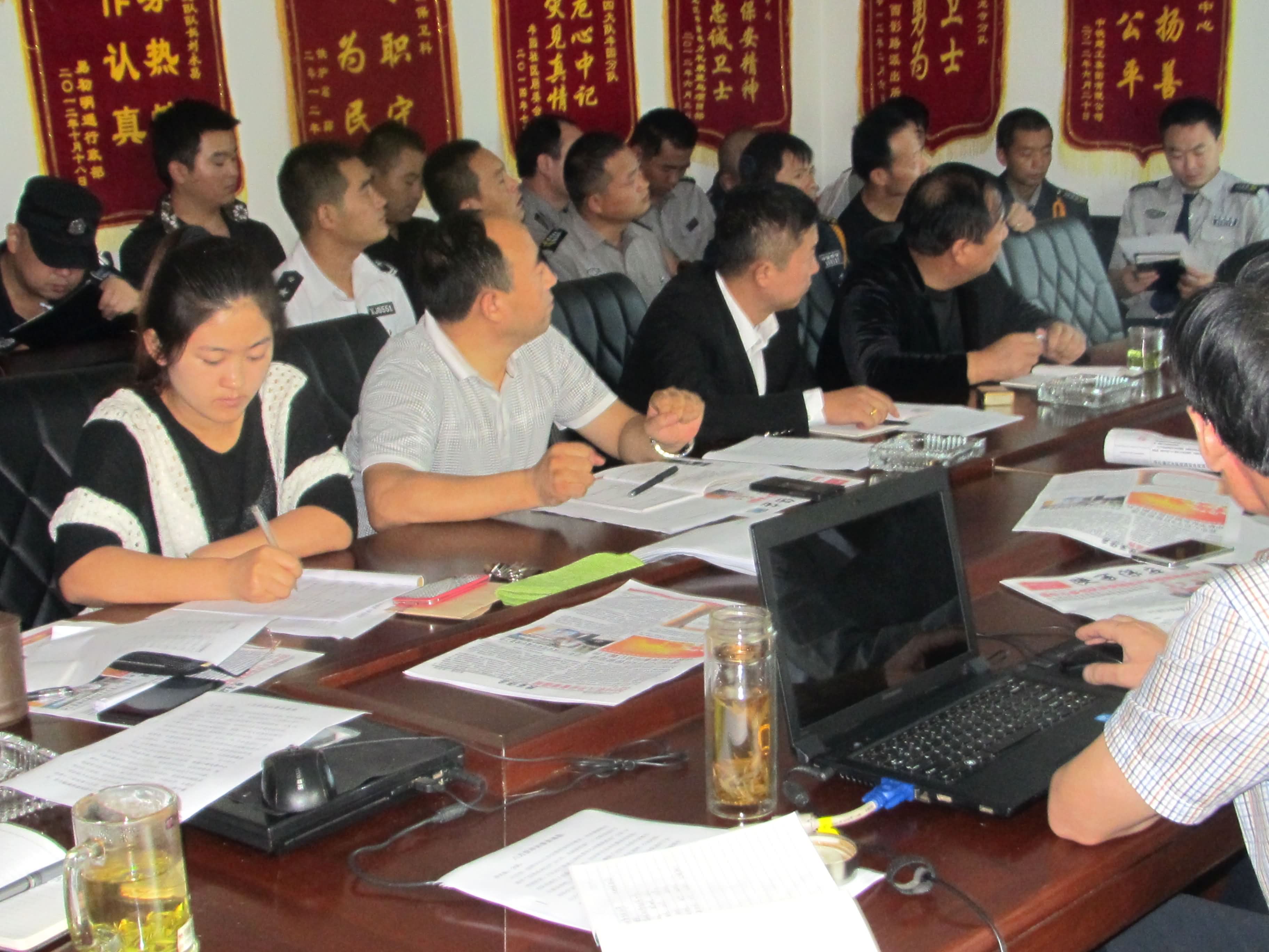 2014年9月12日(周五)上午,在中心总部四楼会议室召开陕西保安服务中心本年度第九次分队长行政例会,中心执行总经理崔龙、业务副总唐晓宏、各大队长、各分队长、管理部、培训督察部、宣传策划部、后勤部等相关部门人员均到会参加,会议由业务副总经理唐晓宏主持。