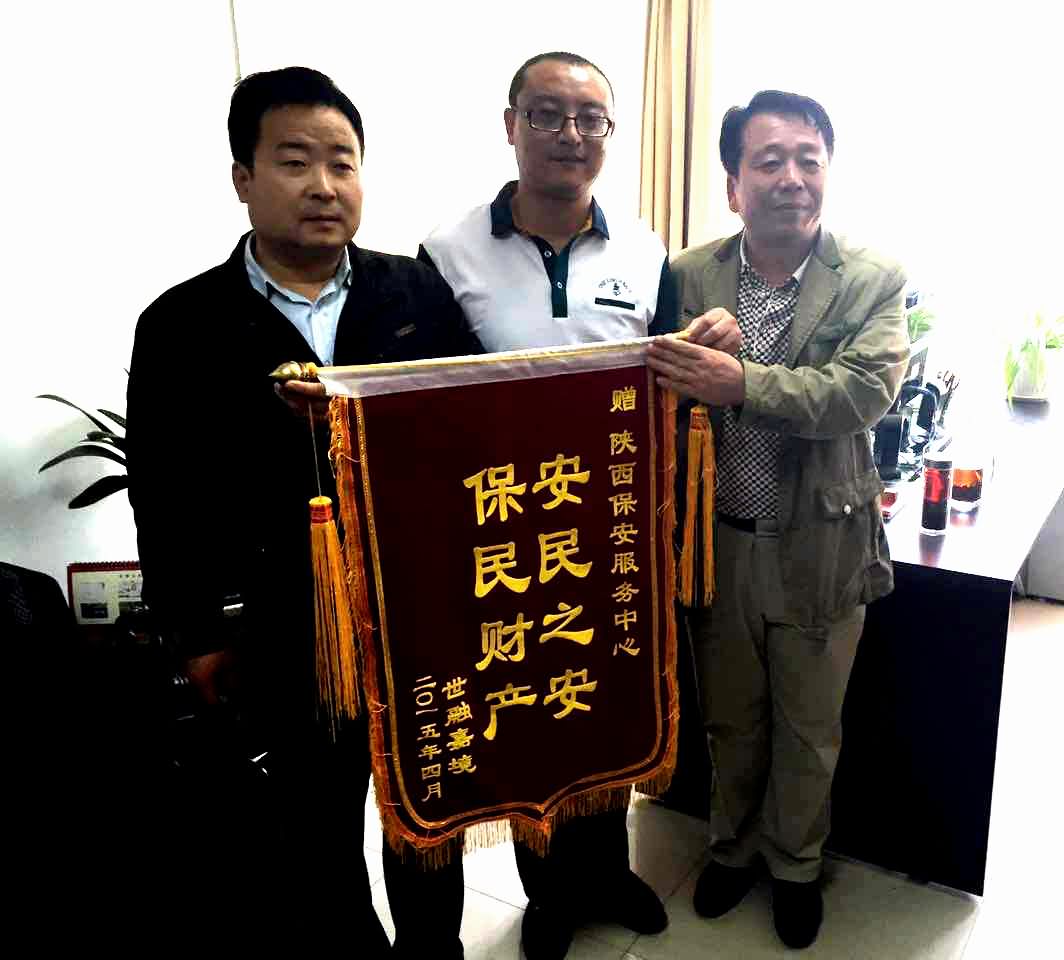 我中心二大队世融嘉境分队一直以来在执勤中,兢兢业业、忠于职守、任劳任怨。此次遇见偷盗行为,及时上报队长,积极配合派出所将其制服。这种心系居民安危的责任心在小区内产生了极大的影响,受到了业主和客户单位的一致好评。并于2015年4月份将一面写着“安民之安,保民财产”的锦旗送到中心领导手中,以表谢意!
