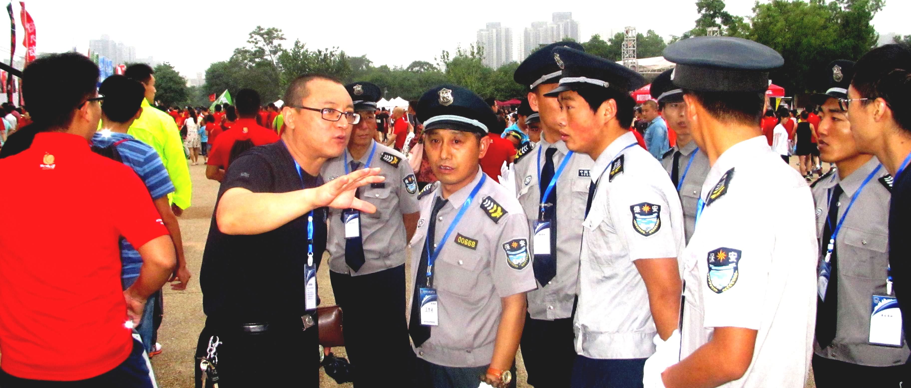 此次“欢乐跑中国·西安站”比赛有数千名的参赛人员,现场执勤任务重。为了切实做好比赛主席台及活动线路的安保工作,维护正常的活动秩序,确实保证活动现场的安全,不发生踩踏等安全事故。在中心总经理崔龙、业务副总经理唐晓宏的指示下,成立临时勤务小组,制定勤务方案,由中心总经理崔龙为总指挥,副总经理唐晓宏、高文海为副总指挥,一大队王伟、二大队阮晓林、三大队王永保、四大队刘安仁、五大队张学习、六大队贾怀定为组长的100名保安队员组成勤务团,圆满的完成了此次任务。