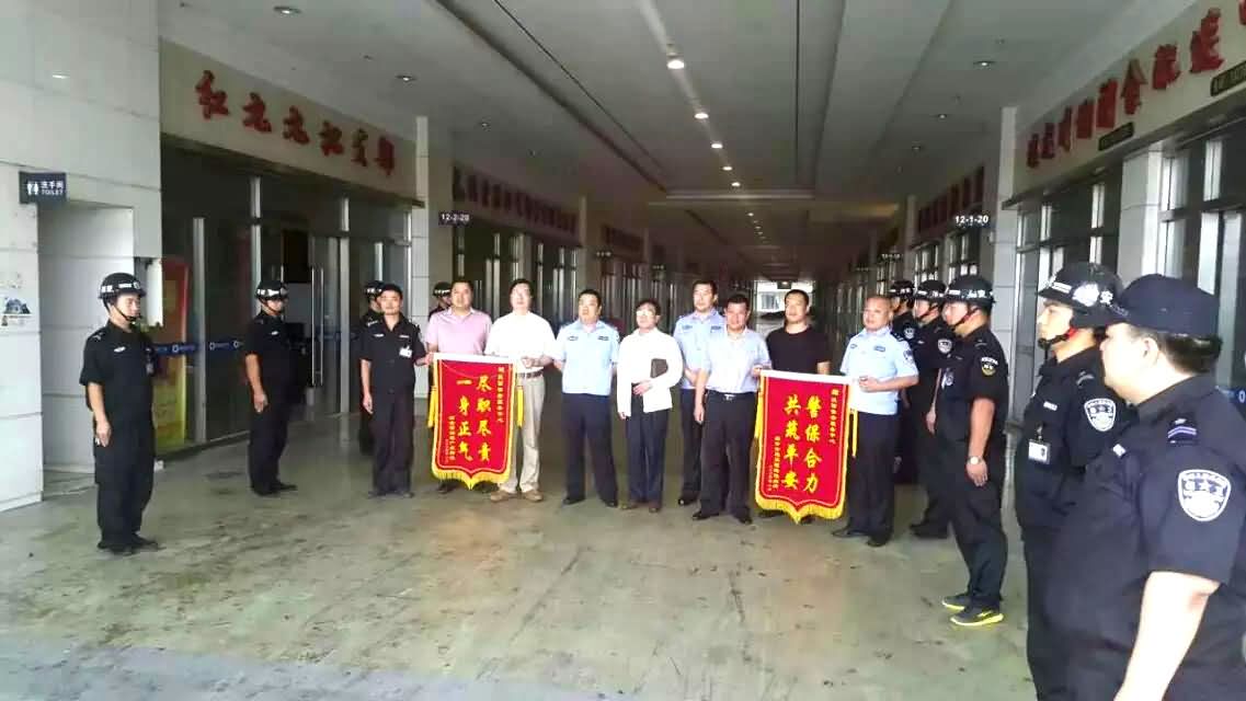我中心自2012年9月向西安雨润农产品全球采购有限公司提供安保服务以来,保安队员在值勤期间兢兢业业、尽职尽责、多年如一日的坚守在工作岗位,为雨润市场的秩序稳定作出了有力保障,同时辅助辖区经开分局破获多起治安、刑事案件.这种恪尽职守,爱岗敬业的精神赢得了客户单位和经开分局尚稷路派出所的高度赞扬。于2015年9月9日,雨润公司和经开分局尚稷路派出所特为我中心分别赠送“尽职尽责,一身正气”和“警保合力,共筑平安”的锦旗,以表感谢.