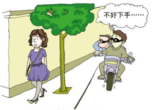 要诀六:生人喊话莫先停。故意把独自步行或骑车的女性当作熟人来打招呼,然后伺机抢夺,也是不法分子的惯用伎俩。如果突然有陌生人向你打招呼或喊话时,你应先观察周围环境看清是否有可疑人员,再决定是否停下。