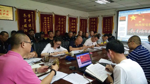 会议进行到第二项,由培训督察部经理蔡有年宣读《六月份培训督察通报》并对该月工作进行总结。六月份,培训督察部分别对西安市地税分队、洛川分队进行了整顿培训,跟进对榆林府谷分队的岗前培训。培训督查部按照公司领导统一部署要求,在公司各部门、各大队的齐心协力下,按时保质保量完成了新疆特变电工5省7市20名的第一批保安员输送。除此外,培训督察部还对18个分队进行了督察,对12个分队进行了夜查。从督察情况来看,各大队长能利用各种资源在开拓市场发展合同的同时,能把工作重心放在分队管理上,不间断的深入分队检查指导,及时发现和解决队伍中出现的各种问题,积极与甲方协调沟通续签合同,不惧酷暑催要合同服务费。进入夏季,各大队长对安全工作高度关注,在重视抓日常安全防范的同时,还亲自进行夜查。85%的中队长能够按照国际管理体系认证的要求抓规范、促落实,能够在岗在位,坚持查岗查人,每天利用公司微信平台汇报工作情况,与甲方沟通协调较好,90%的分队执勤队员仪容形象好,安全意识强,值班室和宿舍整洁,值班日志登记良好,“三标”认证规范资料比以前有了较好的完善,大部分分队交接班和班前、班后制度坚持较好,制度的坚持和规定的落实确保了服务目标安全和队伍稳定。但是,在督察培训过程中也发现了一些问题。一是个别任职的中(分)队长对自身要求不严,与甲方沟通协调不及时,影响了公司的形象,希望各中(分)队长对照检查,吸取教训,提升自身的综合素质。二是个别夜班队员存在值班睡觉的问题,已给予相应处罚。