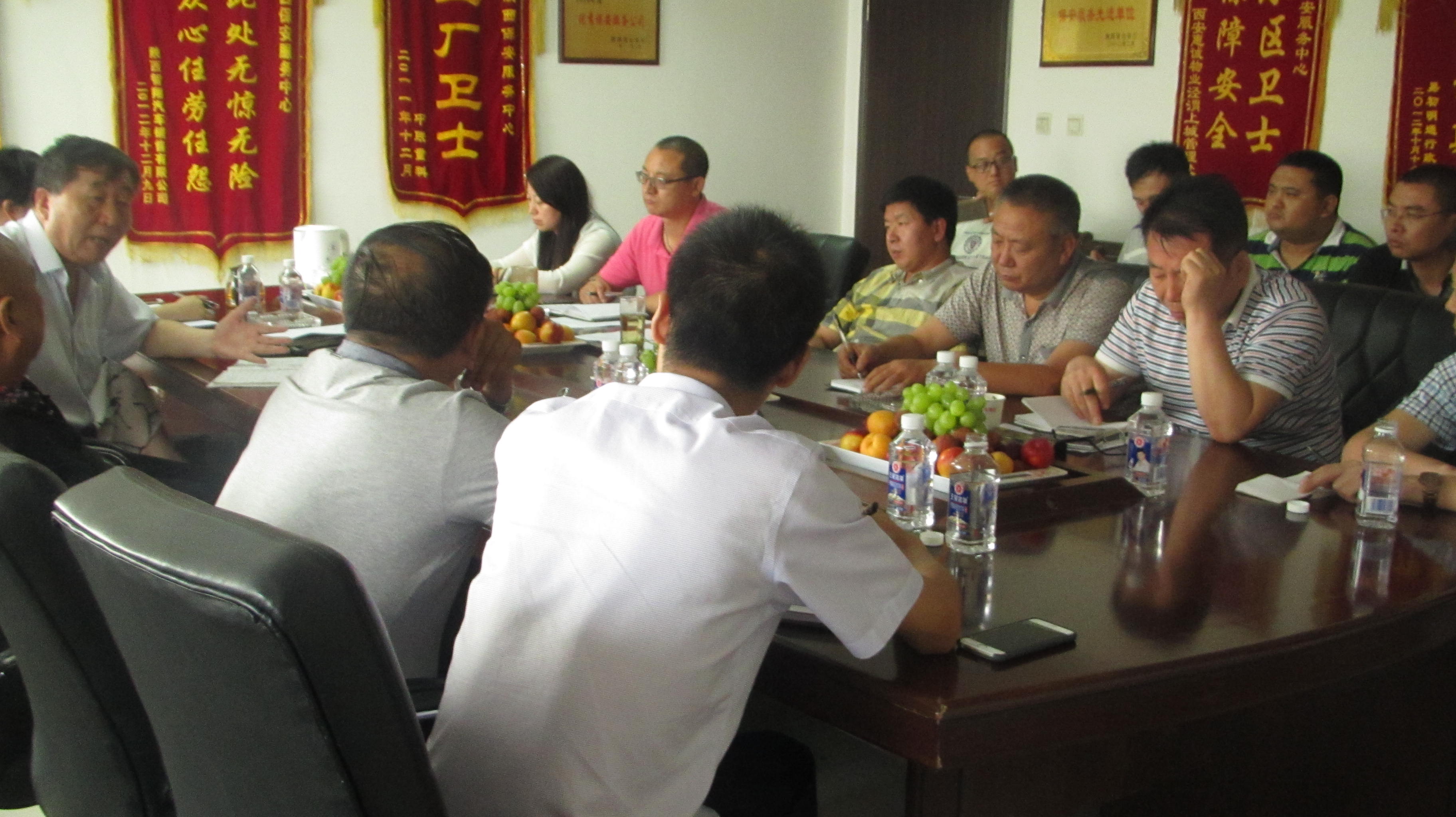2016年7月12日下午,受董事长张金龙及总经理崔龙的邀请,西安市保安协会秘书长程保卫莅临我公司进行指导,并在工作会议中,对近年来保安行业的发展态势和未来的市场走向进行深入讲解和剖析。会议由中心总经理崔龙主持,董事长张金龙、各部门负责人陪同参加。