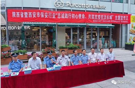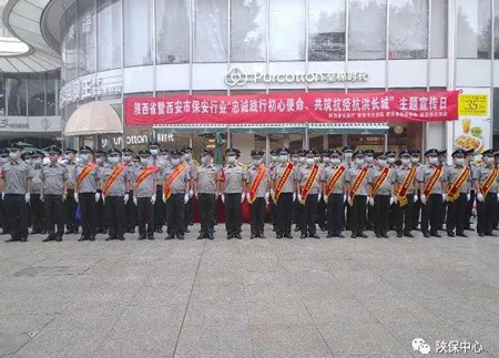 为进一步加强保安行业宣传,提升保安行业形象,按照公安部统一部署,7月24日上午,由陕西省公安厅主办,西安市公安局治安管理局、西安市保安协会承办的《陕西省暨西安市保安行业“忠诚践行初心使命、共筑抗疫抗洪长城”主题宣传日活动》在陕保中心服务项目——M0MOPARK购物中心1号广场举行。