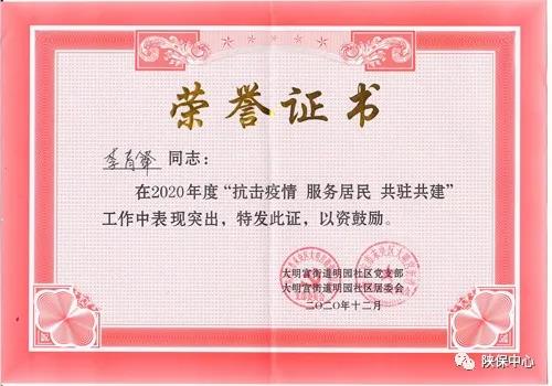 1月15日,陕保中心驻明园小区项目分队收到了大明宫街道明园社区党支部、大明宫街道明园社区居委会送来的锦旗,特别表扬其在疫情防控期间对明园社区做出的巨大贡献。