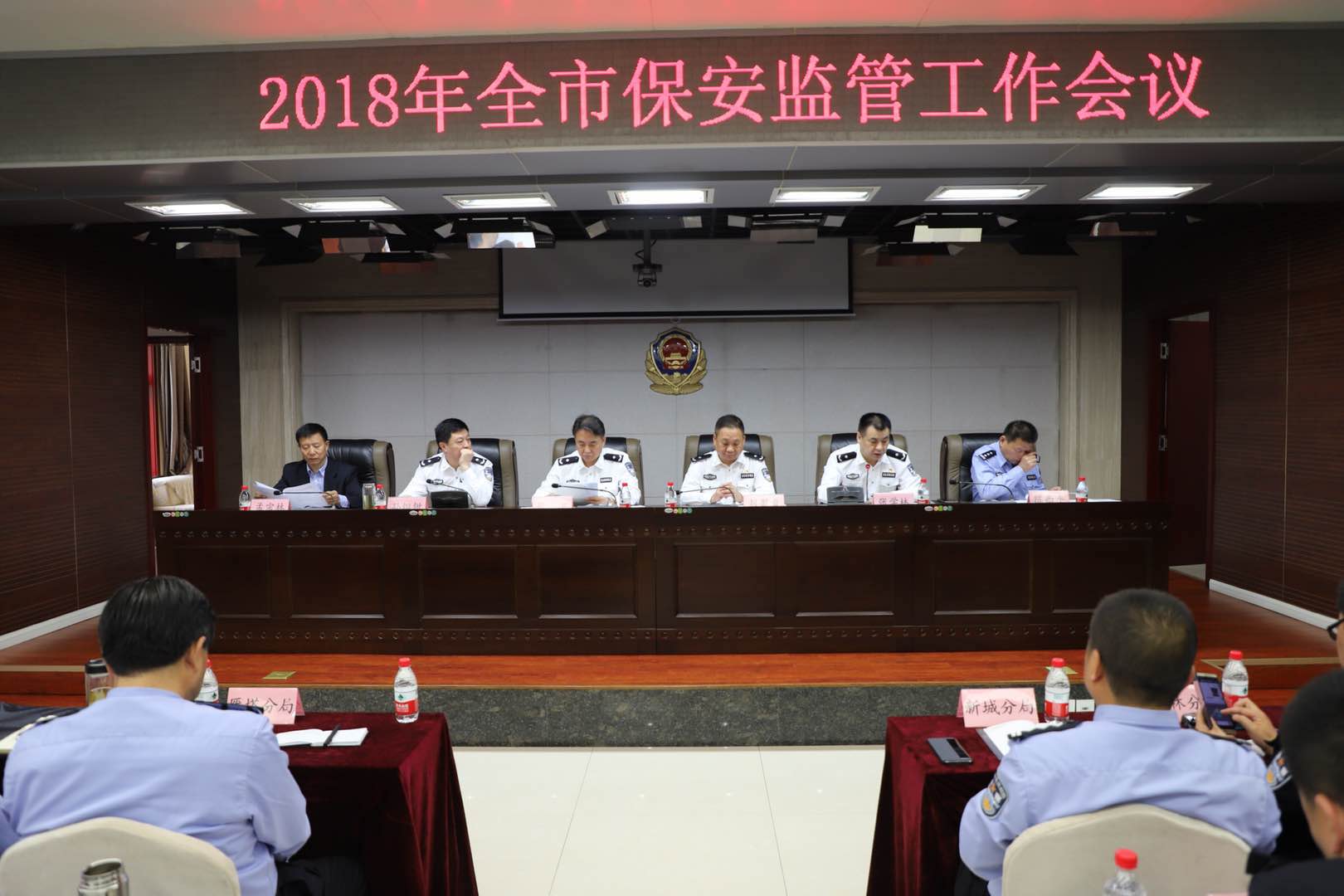 为了进一步加强保安服务监管,确保全市保安服务场所健康有序发展,促进我市保安服务工作再上新的台阶,按照省厅、市局的相关文件要求,报请市局党委同意,4月24日下午,西安市公安局治安管理局在本局会议室隆重召开“2018年全市保安监管工作会议”,为西安市首届星级保安公司授予了奖牌和证书,对对2018年保安管理工作以及全市保安服务装备清理整顿工作等进行动员安排和部署。