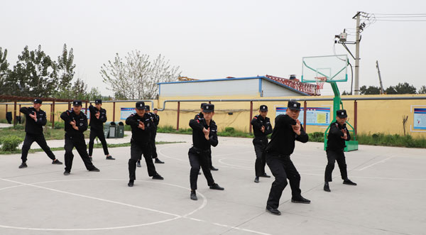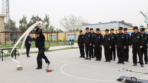 培训部教官惠奎峰对参训人员的基本队列动作、交接班动作、擒敌拳、交通指挥手势基本动作、消防演练的组织与指挥、防爆演练的组织与指挥等进行演练培训。