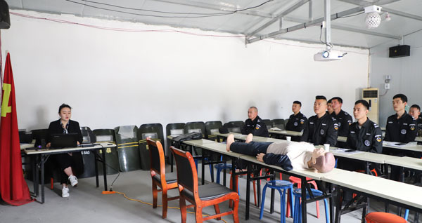 为进一步强化保安人员安全应急防护意识,提高紧急救护处置能力,培训部还专门组织了应急救护培训。由办公室米蕾老师进行讲解,培训中,采取理论与实操相结合的方式,重点讲解了心肺复苏、海姆立克急救法并现场演示人工呼吸、胸外按压等急救方法。培训课堂气氛活跃,秩序良好,参训人员积极参与技能实际操作,掌握了紧急救护技能。