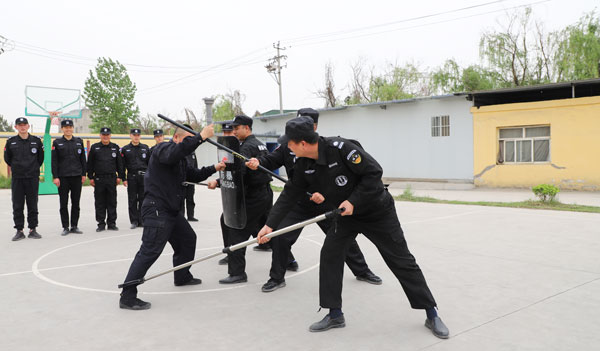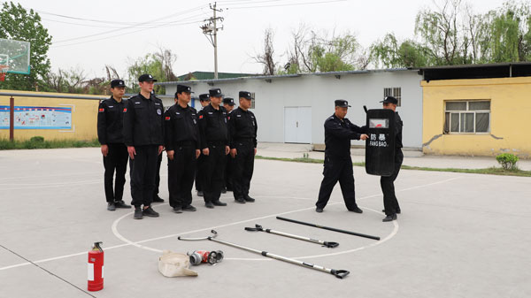 培训中采用模拟训练的方式,对参训人员进行了钢叉、盾牌等反恐防暴器材实战示范演练,讲解了反恐防暴器材使用方法和要领,纠正错误动作姿势,引导他们学以致用。